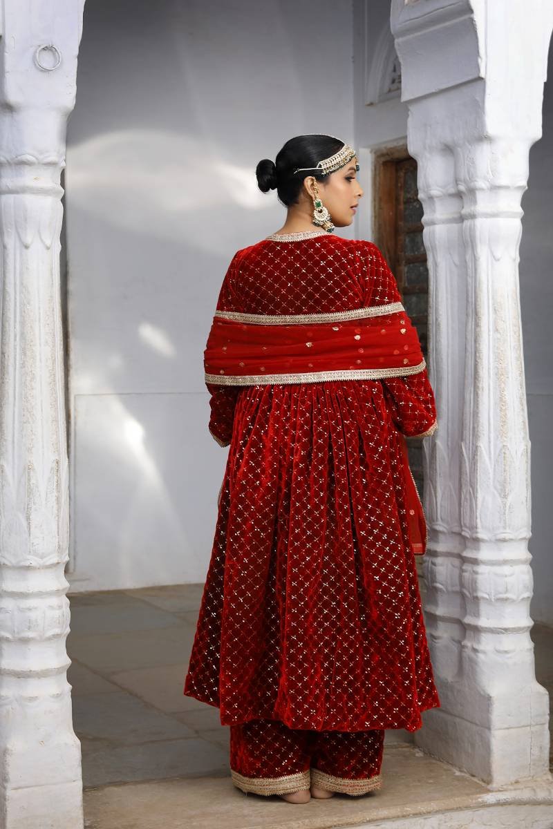 Jashn Red Anarkali Suit Set